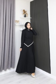 Tuniğin etek ucunda ve yaka kısmında yer alan ışıl ışıl taş detaylar, takı kullanımına ihtiyaç duymadan şık bir görünüm kazandırır. Modern kesimi ve vücuda oturan kalıbı ile zarif bir siluet oluşturur.